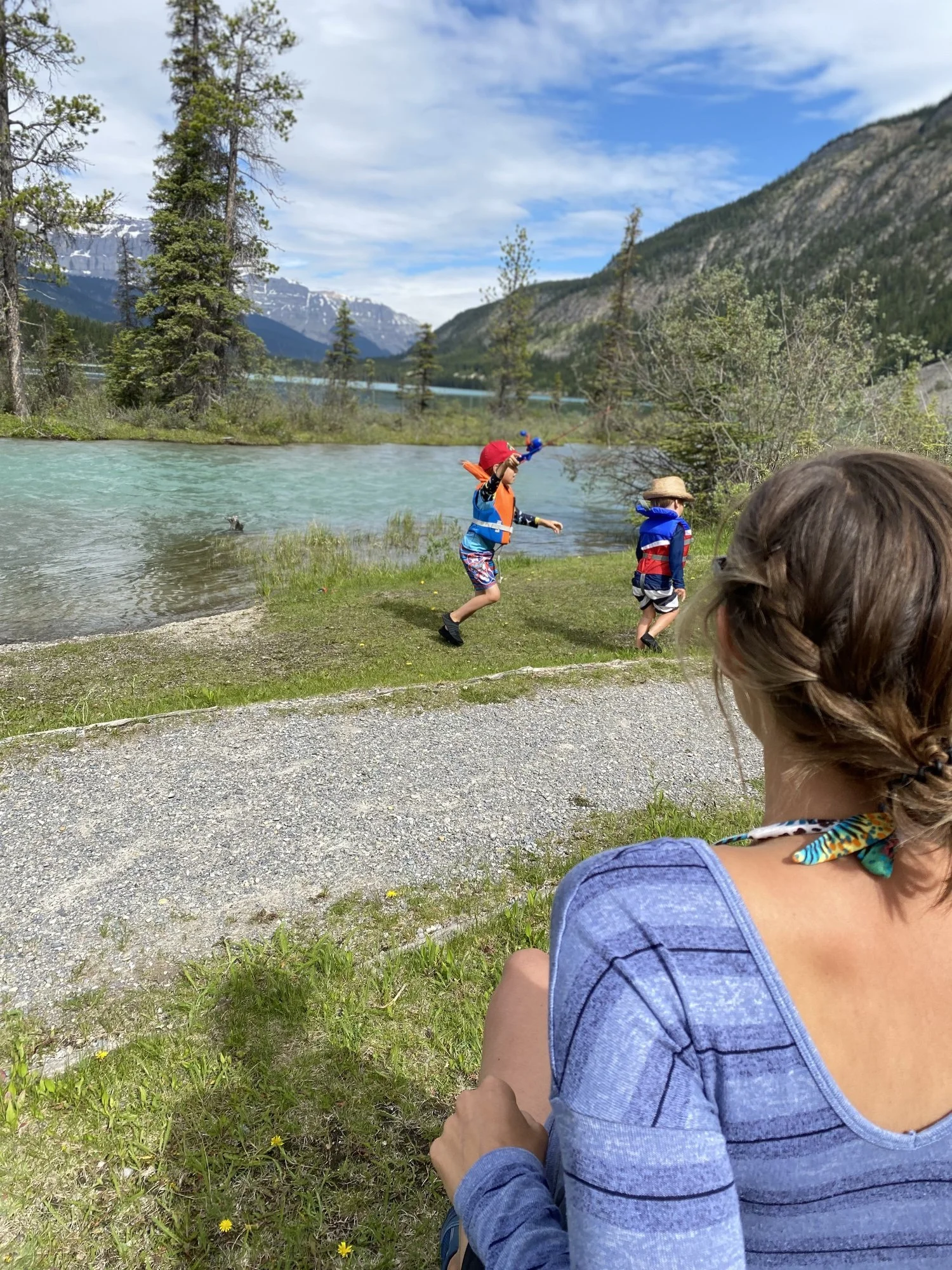 He didn’t move, anticipating that he’d need to support me through another strong contraction. After the next wave passed, he quickly gathered our things and told our kids it’s was time to head back to camp.
