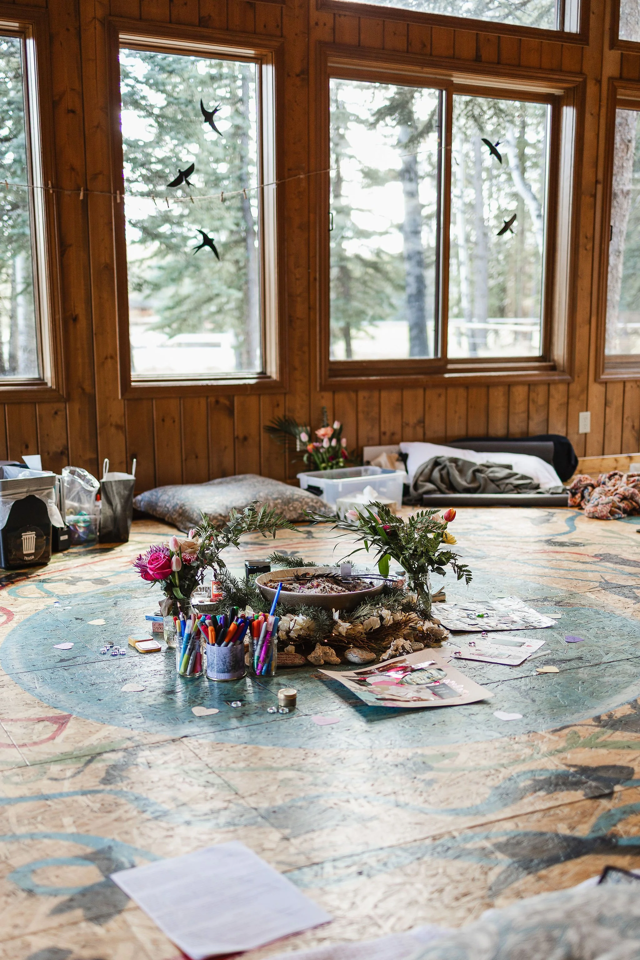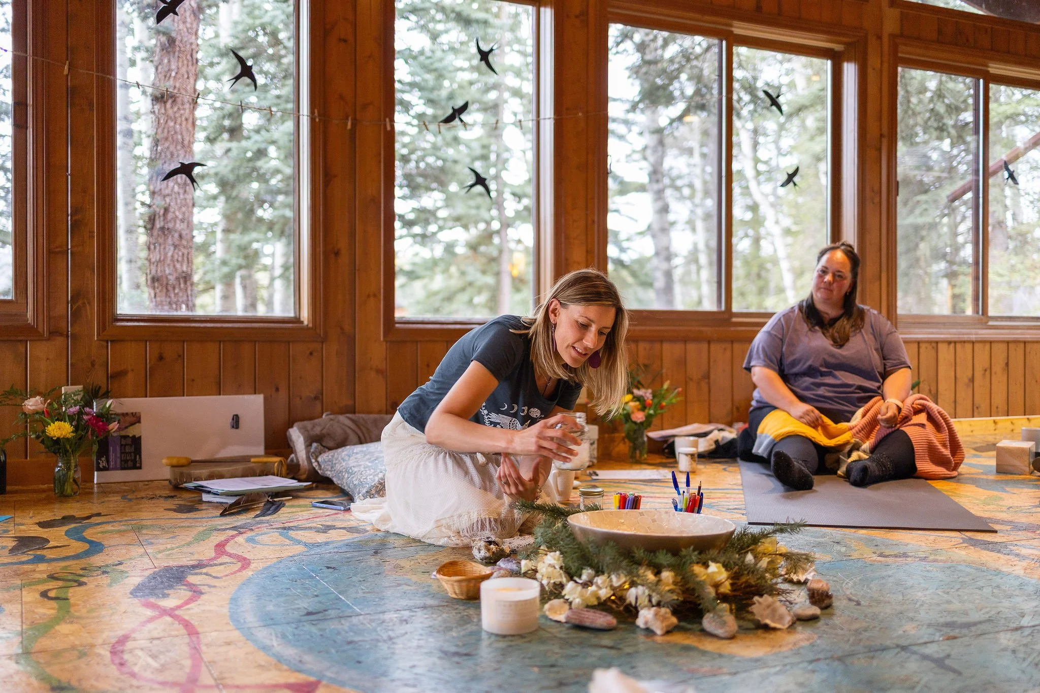 Spacious arrival between 4:30–6:00pm on Thursday to settle in, enjoy tea and charcuterie, and gently ground into the land before we gather around the fire for our opening circle at 7:00pm. Each day unfolds with slow mornings, experiential sessions, and ample unstructured time in the afternoons to rest, integrate, wander in nature, or simply breathe.
